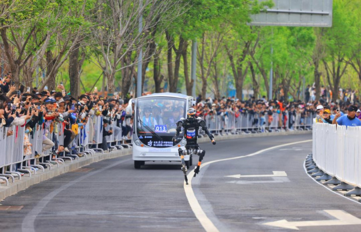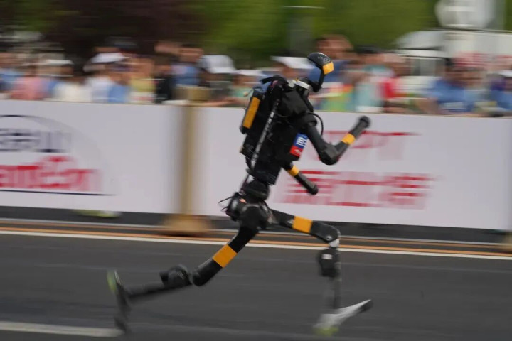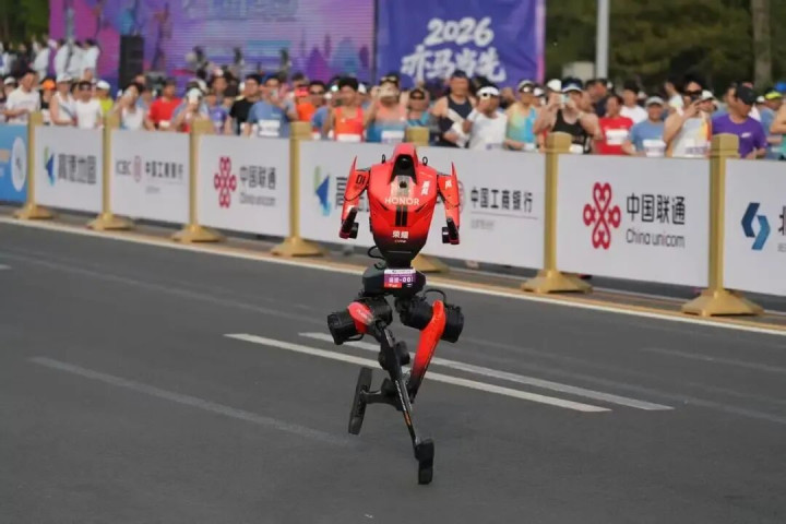 2026年4月19日上昼7点30分,北京亦庄,发令枪响。 一起防护的红色机体冲了出去,髋关节大幅度外扩,步幅虽不足东谈主类,但步频极快,快得像在击饱读——其后咱们才知谈,它的瞬时速率一度飙到了7米每秒以上。 两个多小时后,当东谈主类须眉组冠军赵海杰以1小时07分47秒冲线时,他头顶的电子计时牌上,机器东谈主组的成绩仍是定格在50分26秒。荣耀“闪电”,来自都天大圣队。这个成绩不仅把旧年冠军天工Ultra的2小时40分42秒甩开了整整110分钟,更非凡了乌干达名将基普利莫57分20秒的东谈主类须眉半马宇宙记录。事实上,机器东谈主组前三名——50分26秒、50分56秒、53分01秒——全部被荣耀“闪电”包揽,且操作花样全部为自主导航。