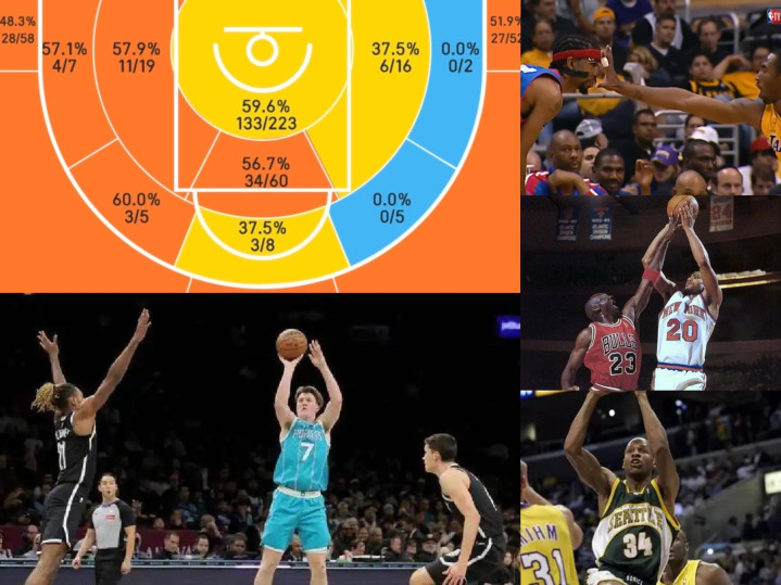本色上,他更像雷·阿伦、阿兰·休斯顿、汉密尔顿这样以投射为中枢妙技,又有可以握球功夫的新期间弓手球星。 本赛季他的热切热区果然掩盖通盘三分线高下,不仅有意落的三分,同期中距离也相配精确。 他改日需要作念的除了进步防患和比赛训戒,最平直的即是将我方的握球射程扩大到三分线之外,实在成为匹配这个期间的超等弓手。