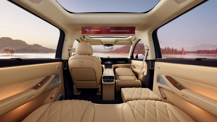 问界M8提供的鸿蒙座舱具有所谓“三指四向五屏流转”交互体验,包括32英寸升降式投影幕布、HUAWEI SOUND音响等隆盛性建设对使用体验擢升匡助不小。智能投影系统2.0、车载悬浮窗等功能更是科技感系数。